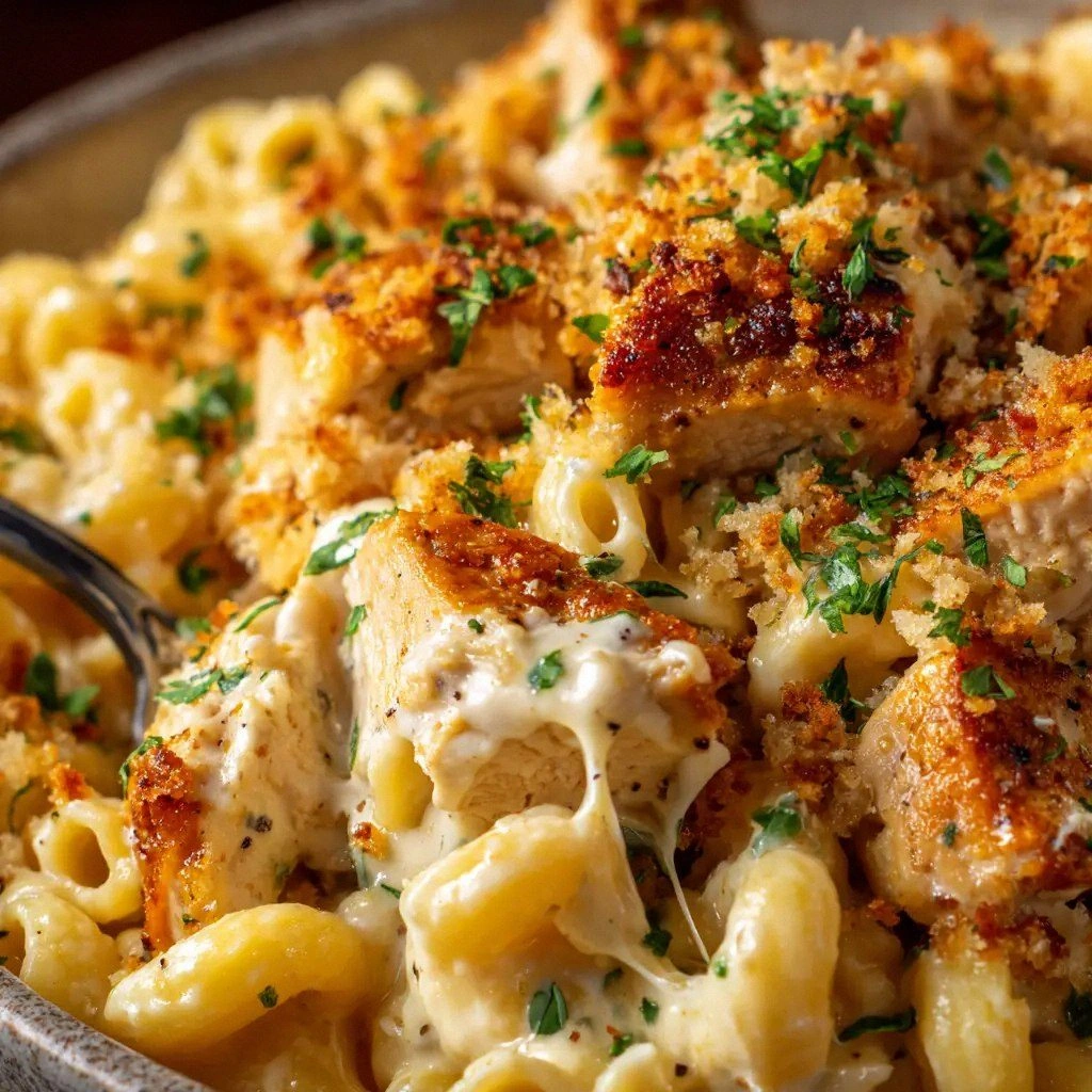 Picture the moment you open the oven door: a golden crust that crackles like crisped bacon, a bubbling cauldron of cheese that smells like a summer picnic, and the unmistakable aroma of smoked Gouda mingling with sharp cheddar. The texture is a symphony—smooth, velvety sauce clinging to every noodle, pockets of tender chicken, and a crunchy top that shatters like thin ice when you bite into it. The heat radiates from the plate, inviting you to dig in without hesitation. I dare you to taste this and not go back for seconds; the flavor will haunt you until the next meal.