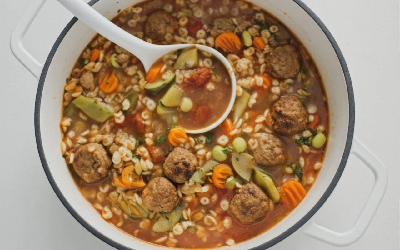 Replace the meatballs with plant‑based meatballs and use vegetable broth instead of beef. The result is a hearty, satisfying soup that’s entirely plant‑based yet still packed with flavor.